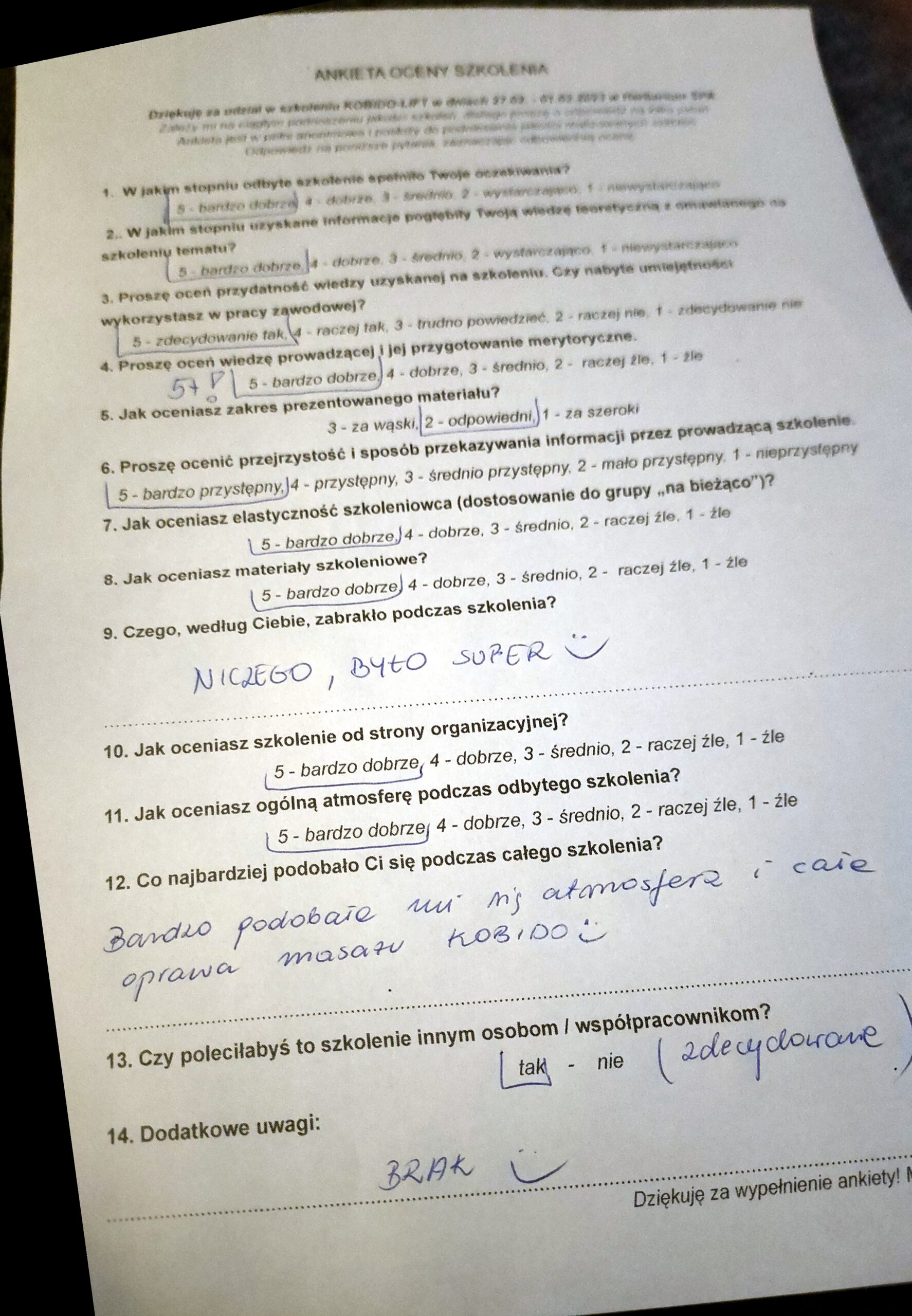 Ogromne zaangażowanie i skupienie na każdym detalu tej zaawansowanej techniki masażu twarzy sprawiło, że praca z tak zdolnym personelem SPA przebiegła perfekcyjnie. Życzę Wam samych zestresowanych, spiętych i potrzebujących błogiego relaksu klientów, aby to w Waszych cudownych dłoniach mogli doznać głębokiego odprężenia, rozluźnienia oraz odmłodzenia, na poziomie duszy i ciała.